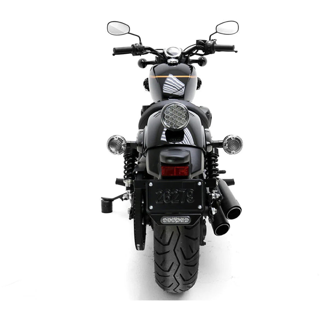 This Auxiliary LED Brake Light Kit was designed to mount a single B6 Pod above or below your license plate, re-using the existing plate mounting points.