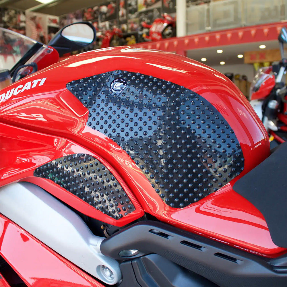 Eazi-Grip™ tank grips feature a unique surface that provides high levels of grip helping to reduce rider fatigue and movement under hard braking whilst cornering. Increased leg grip reduces pressure on wrists and shoulders allowing for more control with your arms whilst reducing the risks of getting arm pump. They also help to maintain body positioning mid corner. Polyurethane grips are the ideal choice for track days and racing, whilst our Silicone Series is ideal for grand touring and commuting.