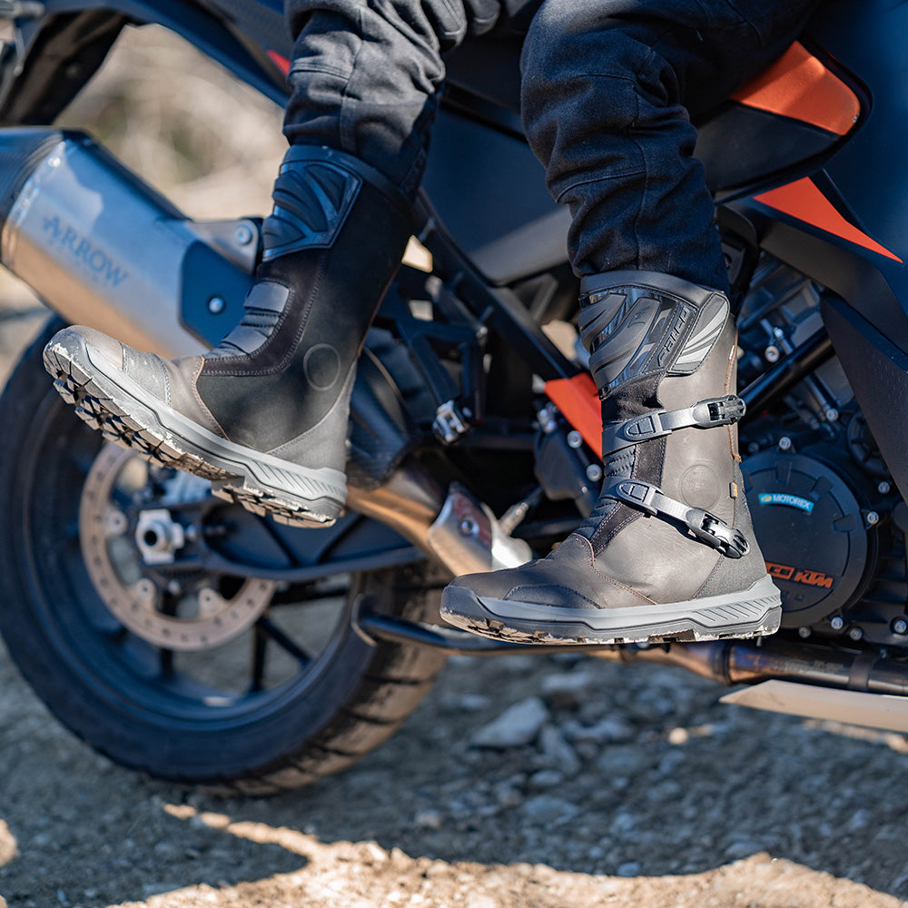 Adventure motorcycle boots for those who appreciate the Falco passion and quality design. The High-Tex Advanced Membrane is resistant to water penetration and is certified waterproof. The D3O® Impact Protection, developed in snow sports and the military industry, was first applied to motorcycle boots by Falco. "D3O Intelligent Molcules" flow freely when moving slowly but on shock, lock together to absorb impact energy. Transmitted force to ankle cup area is significantly reduced thanks to D3O® exclusive support.