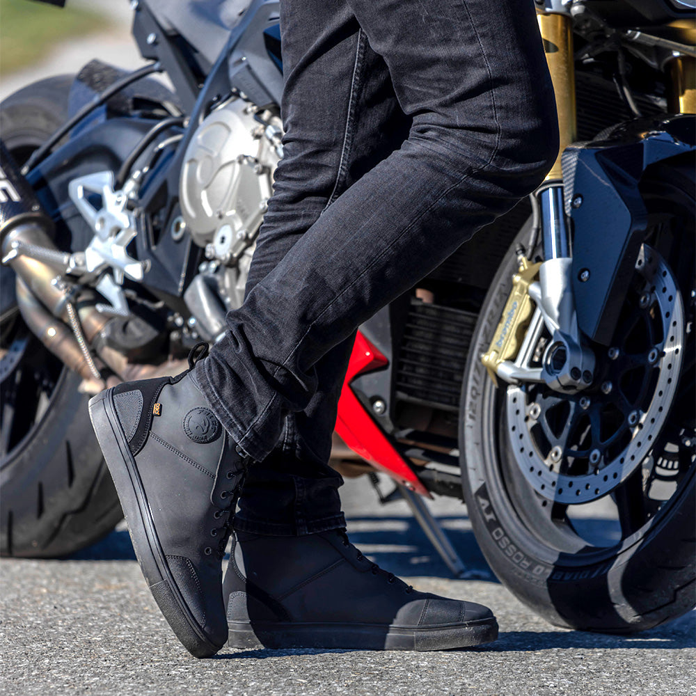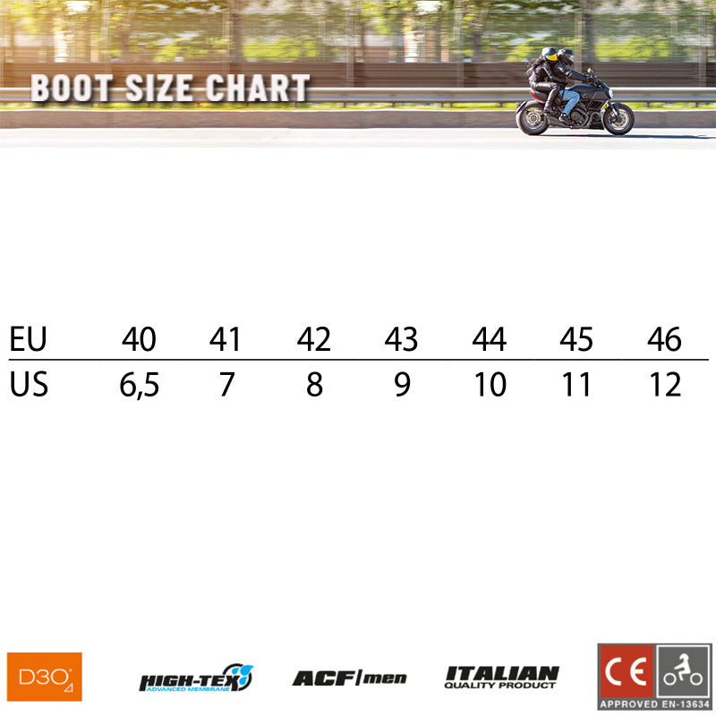 A casual trainer-style short motorcycle boot, that is comfortable enough to cross over into the motorcycle shoe market. Constructed using Falco's Micro-Synth upper, the Viktor motorbike boot provides great road protection with high abrasion resistance. Key areas are protected against impacts in the toe and heel area, including D3O® backed ankle cup inserts for increased comfort. The High-Tex waterproofing membrane keeps you covered in demanding road conditions, because you can never be too sure of the weather! The lace closure keeps the traditional style whilst allowing for maximum adjustment to help get the perfect fit.