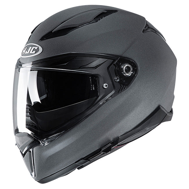 The HJC F70 Helmet brings technical design and materials at an affordable price point. Its aerodynamic shell is made out of fiberglass composite for a lightweight yet stiff exterior. HJC's Advanced Channeling Ventilation System (ACS) helps move air through the helmet and pull heat and moisture out. Anti-bacterial fabric lining the interior wicks sweat away and dries quickly. An integrated drop down internal sun visor makes it easy to manage the sun without having to worry about bringing an extra face shield along. Speaker pockets allow the F70 Helmet to more easily take a bluetooth communication system. A breathe deflector and chin curtain are included from the factory, just a few of the details that HJC has considered. Lightweight fiberglass composite shell
