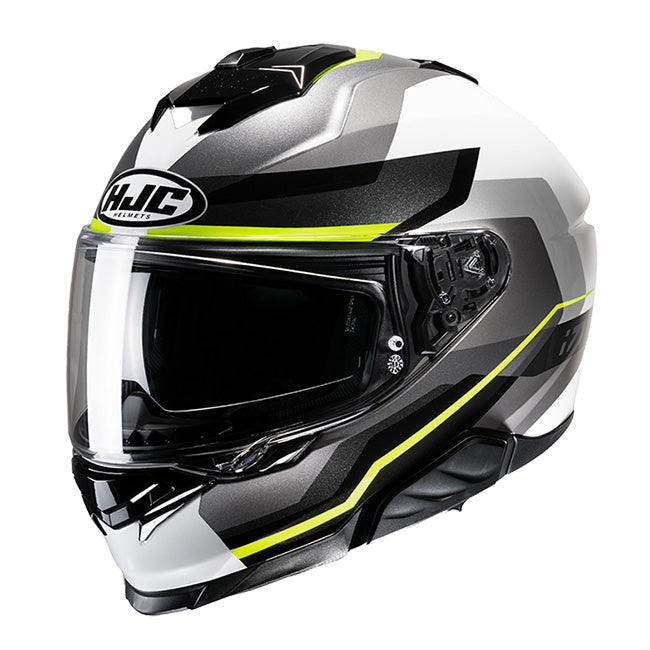 The full face HJC i71 motorcycle helmet pushes the boundaries for a Sport-Touring helmet model with its new sleek shell design. The Advanced Polycarbonate helmet now has 3 shell options to complement the size range, which helps to optimize weight and comfort for the rider. The rearranged top vent with enlarged mouth vents allows increased air intake and ventilation. Also new with the i71 are both face shield and sun visor. The HJ-38 Pinlock-ready face shield comes with a new PE (Push/Eject) locking system for improved safety, yet it is still easy to use with gloves. The new sun visor (HJ-V12) provides a new 3-position option for the rider to adjust the sun shield forward (up to 10mm) delivering ideal sun visor protection. The i71 will also accept the second-generation Smart HJC Bluetooth systems.