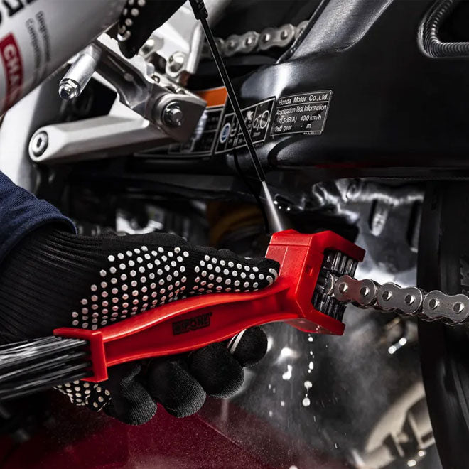 The brush is an indispensable accessory for optimal cleaning of the chain and sprocket thanks to its three-sided head, it removes all grease and other dirt even the most stubborn. The brush part allows you to reach every little corner.