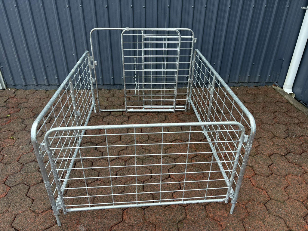 Manufactured with 365 weld mesh and light but strong tubular frames. The two sides are reinforced with heavy duty pins that slot into the vertical columns of the trailer. The front and rear doors are fitted onto the hinges of the sides. The rear door has a half sliding door incorporated (except the K424/K434 crate) which can also be placed in the center of the crate.