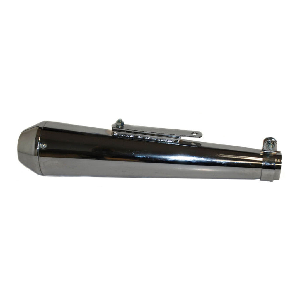 Perfect for those looking for something unique without being over the top. The traditional reverse cone muffler in a shorty version. Capable of fitting 1-3/4" pipes and 1-3/8", 1-1/2" and 1-5/8" pipes with the included reducers, while the included clamp allows for quick and easy installation. The removable baffle can be repacked with muffler packing for quieter running or completely removed to raise those decibels.