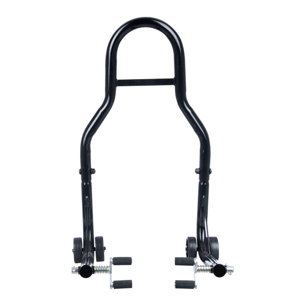The Oxford Big Black Bike Paddock Stand is exactly as its name suggests. Available as both front and rear stand. The front stand has universal pins for the forks whilst the rear has a swingarm.