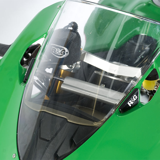 With many mirrors mounts doubling as fairing mounts R&G have mirror blanking plates are a neat way to cover the holes left from removing your mirrors and ensures the fairing is securily retained. Shaped to fit the recesses left by removing the mirrors and complete with the R&G logo these can be fitted to your bike seconds, helping your bike to get that racer look.