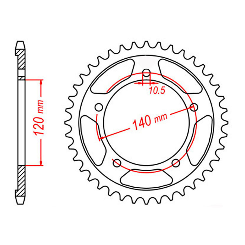 MTX OE Steel sprockets are strong and durable, heat-treated and hand-finished for longevity. Front sprockets are constructed from SCM420 chromoly steel alloy where rear sprockets are constructed from C45 high carbon steel with a Zinc electroplated finish. Designed as an OEM replacement to exceed OEM specifications at a fraction of the price, making them your ideal cost-effective solution for replacing old worn and warped sprockets.