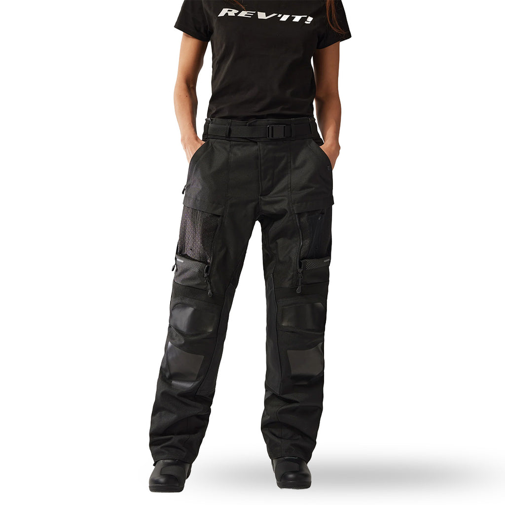 The Sand series is an icon in the REV'IT! lineup, embodying a distinctive style that has, over the years, defined travel within the motorcycle industry. That legacy continues with the Sand 5 H20 ladies trousers. With a speed-driven vibe to match the more sportive adventure bikes on offer, the Sand 5 H2O pants include drop-down ventilation panels on both front thighs, calf adjustable straps, as well as small mesh utility stash pockets - emphasis on small! - despite most of the thigh being dedicated to the ventilation mesh panels. REV'IT! have taken their proven Over and Under waterproof liner concept and applied it to these women's motorcycle pants: you can wear the detachable liner over, or under, the CE-certified external layer, according to the weather and your preference. The waterproof liner, made of a resilient 3L hydratex material, has reinforcements at the seat and inside of the knees for long-term durability. Furthermore, the waistband of the main trousers, comes with a belt buckle and a stretch insert strategically positioned at the center front of the pant for improved comfort when sitting. A detachable thermal liner is also included to up the ante for warmth and comfort on cold and rainy days.