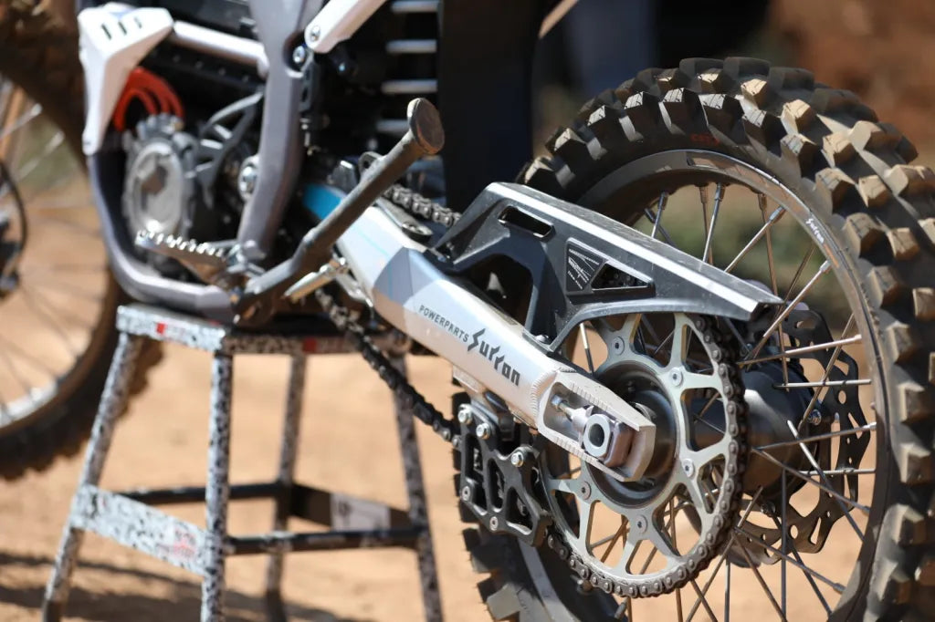 Surron Storm Bee Dirt Bike F features a lightweight aluminum alloy frame and suspension system, which offers excellent stability and control even on rough terrain. In addition, the bike is equipped with hydraulic disc brakes that provide reliable stopping power, and the wide tires offer excellent traction on loose or uneven surfaces.