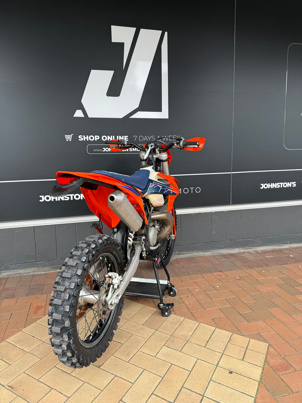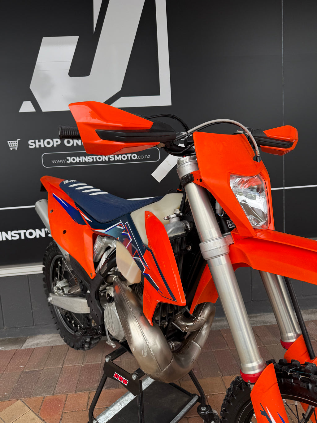 The 2022 KTM 300 EXC TPI is a legendary 2-stroke hard enduro machine renowned for its exceptional power, low-down torque, and lightweight, agile handling. The bike features Transfer Port Injection (TPI) fuel injection technology, which provides a smooth, controllable power delivery, cleaner emissions, and eliminates the need for pre-mixing fuel.