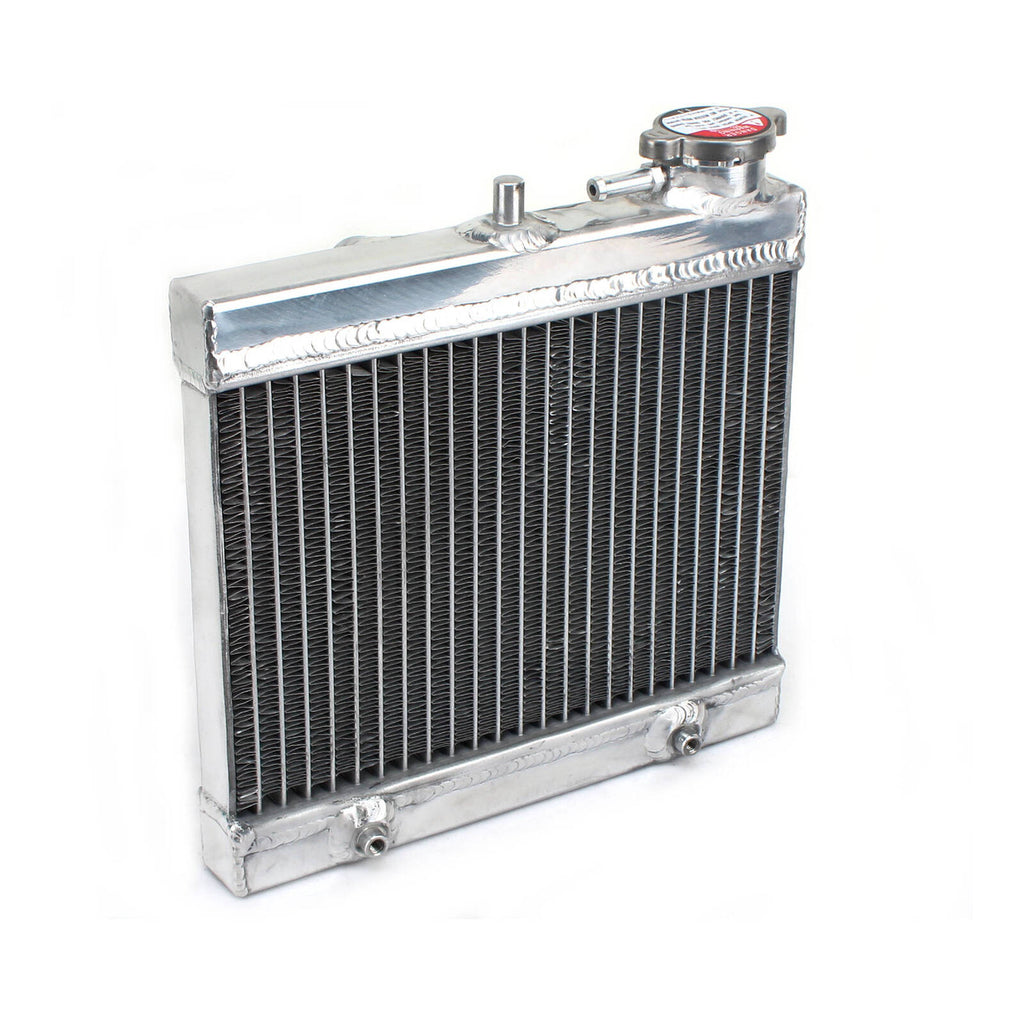 Whites aluminium radiators make great replacements to your bent, cracked, and damaged radiators. Whites radiators offer exceptional cooling and maximum efficiency to ensure your machine's top performance. Based on the OEM specs, a hand welded aluminium design offers both a great fit and styling. All cap side radiators will include a new radiator cap.